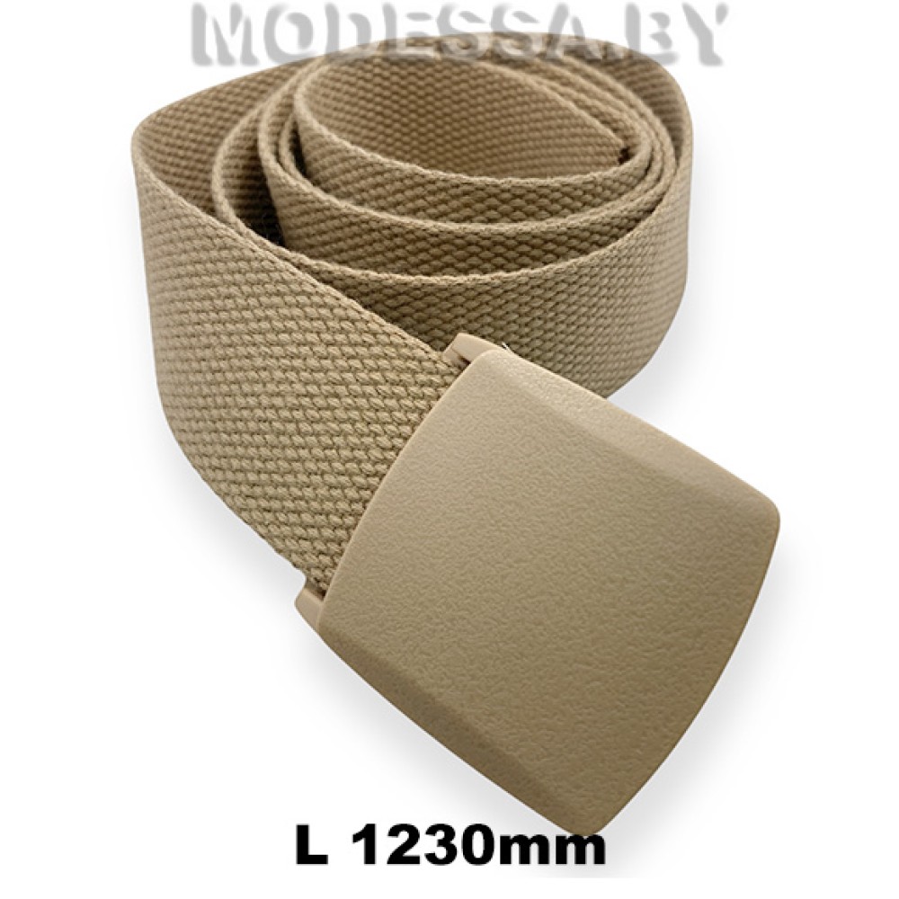 Ремень текстильный с пластмассовой пряжкой, артикул: 1.2. Ширина ремня 37мм. Длина с пряжкой 1230мм. Ширина пряжки 47мм. Ремень классический прочный, надежный, долговечный. Отличный вариант для ежедневного использования. Пряжка-зажим способна фиксировать длину полотна в любом месте.